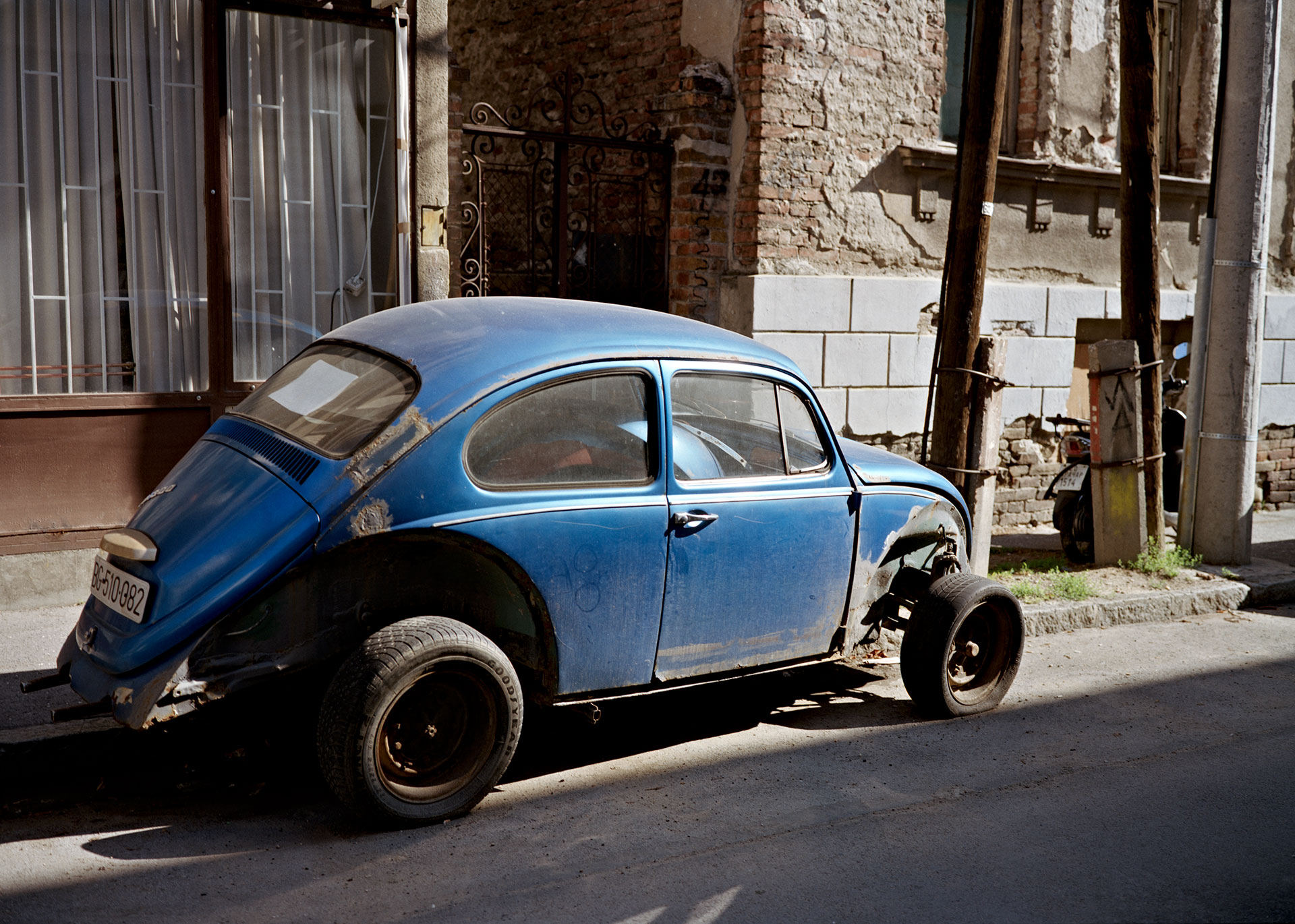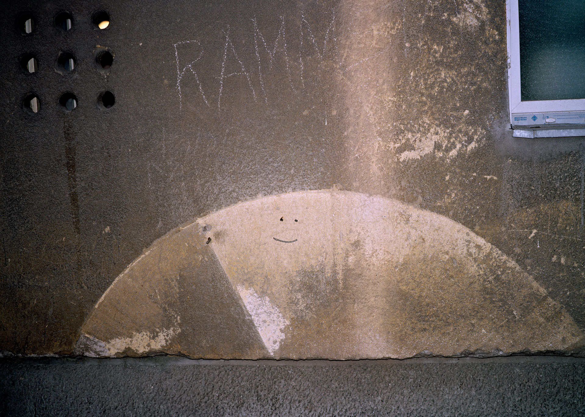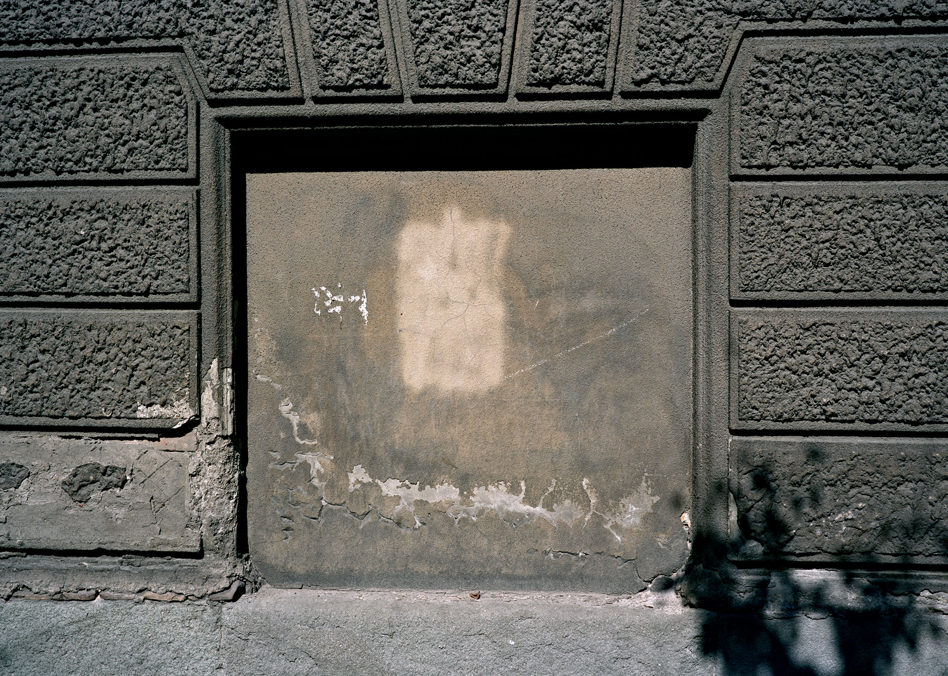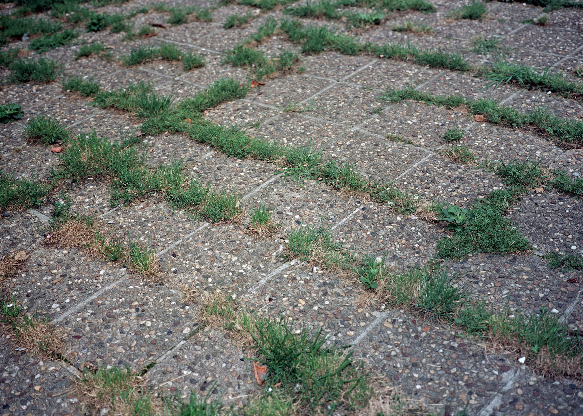 Que montrent en effet ces photographies ? Pour toutes vues de Belgrade, ce sont ici, pour la plupart, des vues de sols. Nids-de-poule et autres fissures, comme dessinées sur, ou gravées dans l’asphalte. Lignes imprévisibles, avant que de les suivre, car c’est le temps qui les a tracées, comme des rides. Lignes sur lesquelles on observe tantôt l’effort de l’homme pour en conjurer les effets, réparer ce qui a été usé, le recouvrir d’une nouvelle peau, tantôt l’effort de la nature, profitant de ce délitement, pour reprendre ce qu’on lui avait d’abord ôté, feuilles ou fruits arrivés là au hasard des vents, excroissances des herbes, celles qu’on dit mauvaises, venues patiemment du sous-sol, autant de touches de couleur, pour l’œil, sur camaïeu de gris.
